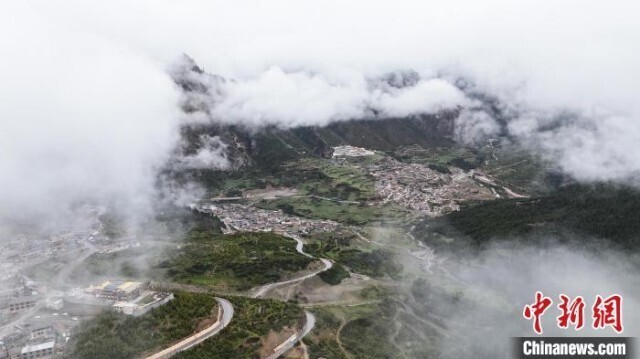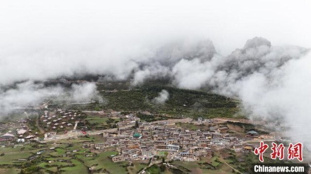 5月11日,雨后的甘肃扎尕那景区云雾缭绕、宛如仙境。扎尕那景区位于甘肃省甘南藏族自治州迭部县益哇乡,扎尕那是藏语,意为“石匣子”,整个景区平均海拔在3000米以上,群山环抱,藏式村落掩映其中,构成独特的人文和自然景观。