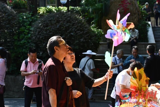 “九日登高处,群山入望赊”。10月11日正值农历九月初九重阳节,登高是广州人过重阳最为热闹的一项活动。而在广州市白云山、越秀山等多处热门登高点上,市民登高热情高涨,一路高举沙沙作响的各样风车,祈愿步步高升、时来运转。