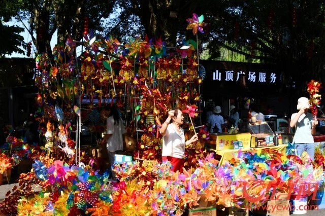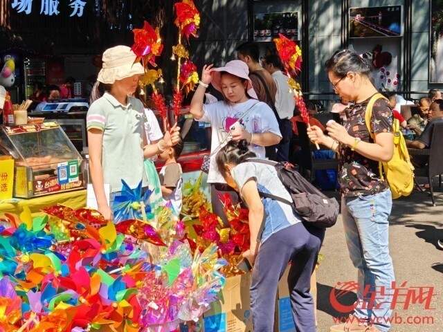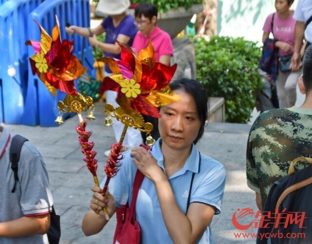 临近中午,山顶广场风车摊位客如云来。摊位前,市民们驻足购买小风车以祈求“登高转运”;摊位里,老板尹艳云忙碌却满足。2005年起,她便在白云山上设摊售卖重阳节风车,如今已有近20年时光。“今年进货500支风车,中午前已经卖掉大概三分之一了。”她笑称自己已经成为不少登山人节日记忆的一部分,“不少老朋友还会专门来跟我打招呼,让我很感动。”