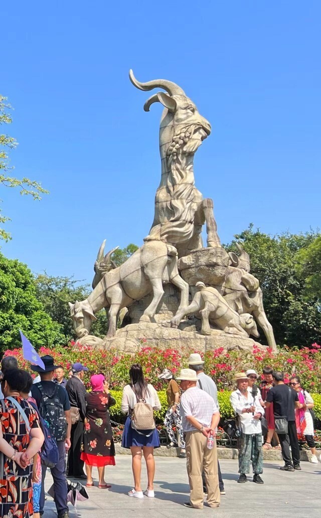 越秀山上同样游人如织,市民纷纷登上百步梯“打卡”中山纪念碑、四方炮台、五羊雕像等景点,脚下是蜿蜒山路,两侧为斑斓林木,登顶远眺,越秀的古韵、天河的繁华等城内风光尽收眼底。