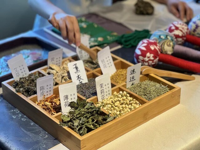 而在越秀山下的秀明城中,非遗系列手作讲师周嘉慧与市民一同用非遗致敬传统、以手作迎接重阳。艾草、陈皮、薄荷、迷迭香……活动现场,不少市民朋友亲手参与香囊、香锤的制作与学习,感受历代传统香方的魅力,以及两千多年绵延衍变中重阳佳节被赋予的多元文化内涵。