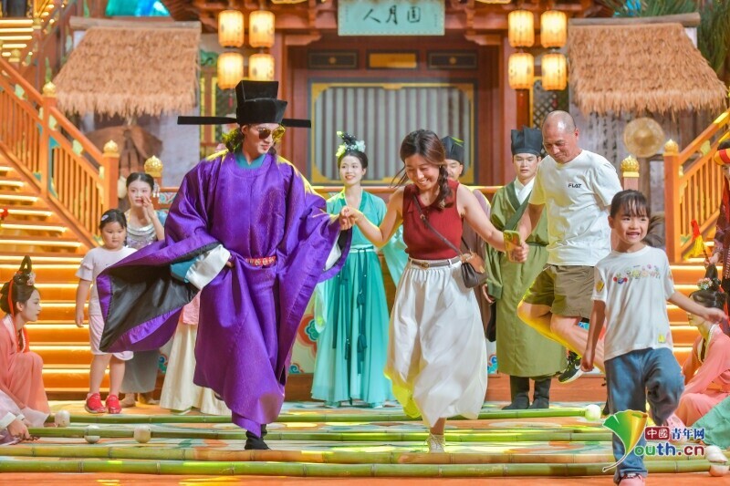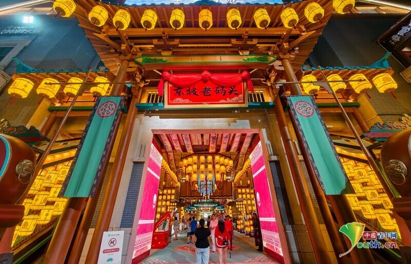 2025年6月10日晚,海口,中国首个沉浸式东坡文化生活街区 —— 海口东坡老码头灯火辉煌,游人如织。该街区以东坡文化为核心,融合东坡诗词、美食、市井风情等元素,让游客可观赏古风表演、体验宋式点茶、品尝“东坡宴”特色美食,或身着汉服打卡拍照,沉浸式感受千年前的文雅风韵。 中新社记者 骆云飞 摄