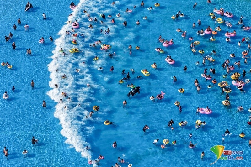南京持续高温天气 水上乐园开启“下饺子”模式。