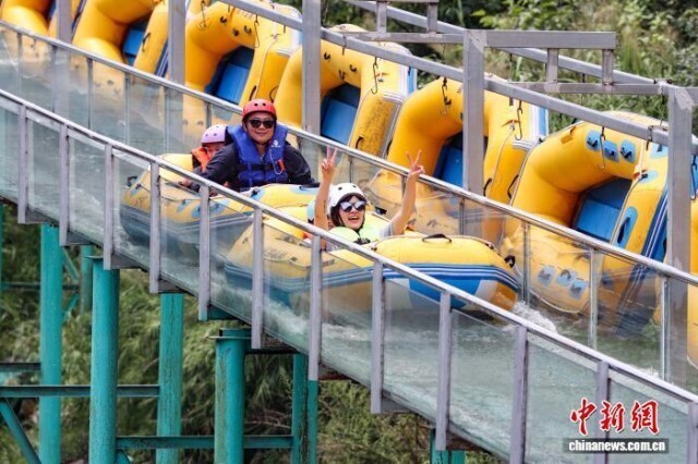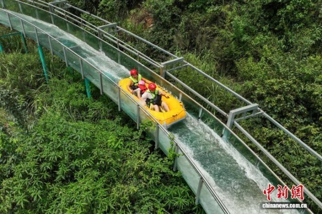 7月31日,游客在体验漂流。中新社记者 瞿宏伦 摄