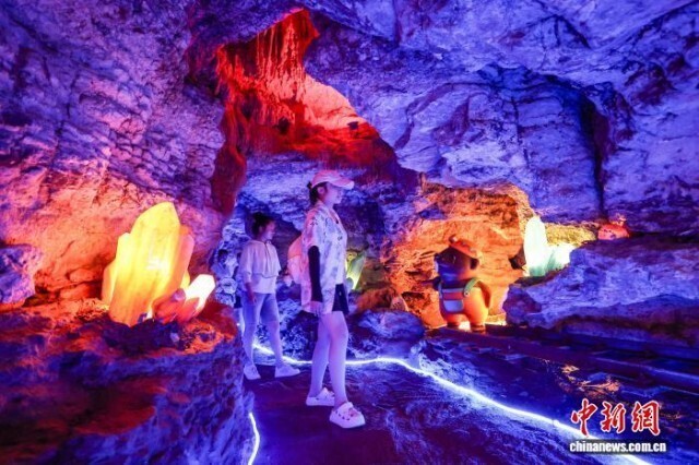 7月31日,游客在“水晶矿洞”内游览。中新社记者 瞿宏伦 摄