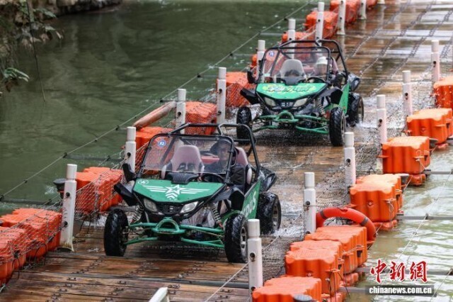 7月31日,游客在体验水中越野车。中新社记者 瞿宏伦 摄