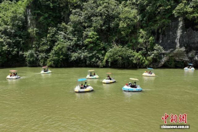 7月31日,游客在体验漂流。(无人机照片)中新社记者 瞿宏伦 摄