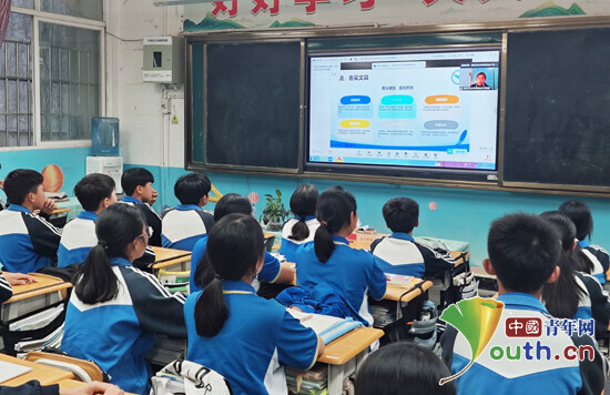 南京工业大学学生会权益联络部的石婉颖在线为云南省宁洱哈尼族自治县宁洱镇第一初级中学的孩子们科普消费者权益知识。南京工业大学研支团供图