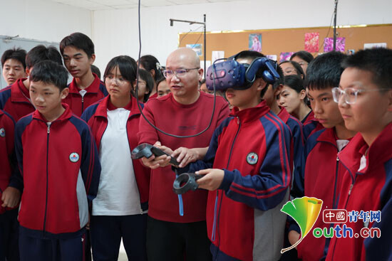 在贵州大学旅游与文化产业学院,研支团成员还组织学生们参与了VR科技、激光雕刻、3D打印、模拟电商直播等科技体验项目。